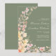 Ponha o tom para o seu dia especial com este maravilhoso convite de casamento verde de sábio com flores delicadas de aquarela em branco suave, pêssego e matizes de marfim. O arranjo floral romântico se cascata graciosamente ao longo da borda, complementando a elegante tipografia da escrita. Perfeito para jardins, rústicos ou casamentos clássicos, este convite totalmente personalizável permite personalizar cada detalhe para um toque verdadeiramente único.