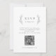 A mão russa ilustrou a coroa das folhas botânicas e a fonte clássica moderna em preto e branco, Simples e elegante. Cartão RSVP excelente com código QR para casamento clássico moderno, casamento formal simples, casamento botânico elegante. Veja todas as peças correspondentes na coleção.