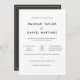 Este simples e elegante cartão de convite para casamento tem um eterno minimalista e design . A configuração padrão para a cor de texto na parte frontal é preta. A borda atrás é uma cor chamada 'ouro velho'. Você pode alterar a cor desta linha no modo de edição. Tomem nota, no entanto, de que, se optarem por manter o símbolo e o símbolo nas costas entre os vossos nomes, esse símbolo e essa cor não podem ser alterados, e nós escolhemos o mesmo tom de "ouro antigo" para isso. No nosso compro, oferecemos também uma versão semelhante deste cartão sem a fronteira, e outra com a fronteira na frente em vez do verso. A base na frente desta placa está definida para ser simplesmente a cor do papel, como escolhemos usar uma base clara com o texto de amostra. Não escolhemos nenhuma cor. No verso, porém, há um tom de cinza escura escolhido para a base. Você pode adicionar uma cor de sua escolha à frente como base, seja ela branca ou outra coisa, e/ou mudar a cor de base no verso, de acordo com o seu gosto. Você pode querer fazer com que eles tenham a mesma cor de sua escolha, talvez branco ou algo parecido ou outro matiz totalmente diferente. Ou você pode preferir um tom base diferente para cada lado. Você pode digitar um número de cor hexadecimal específico ou simplesmente escolher uma cor pela visão no modo de edição. Embora não seja possível alterar a cor do símbolo de e-mail no verso, você pode optar por removê-lo totalmente - você pode, por exemplo, optar por excluir todo o texto no verso a favor de um vazio de volta ou de uma mensagem de sua escolha. Além do suporte, você pode alterar o estilo, o tamanho ou a fonte do texto, bem como excluir ou alterar qualquer texto de acordo com as suas necessidades. Vocês vão notar que esta modelo usa o inglês americano, daí a ortografia da 'honra', que é claro que pode ser facilmente alterada. Use as ferramentas de design para personalizar este modelo e torná-lo exclusivamente seu! E por favor, confira o nosso simples e elegante guarde a data e os cartões de acesso.