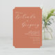 Uma bela design mostrando uma elegante tipografia de caligrafia com script em um fundo de laranja queimado em teracotta. Perfeito para quem ama designs modernos minimalistas. Um design de convite de casamento de na moda e moda com elementos clássicos. Também estão disponíveis itens de papelaria de casamento e outros formatos de convite de casamento.