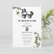 Um design de casamento com guião de Halloween gótico com videiras florais pretas, crânios e coração. Um design branco de Halloween que usa verde botânico preto e escuro junto com a tipografia de caligrafia de vintage. Um design Gothic na moda, ideal para os temas do casamento de Halloween. Uma única botânica negra, crânios e design de convite para casamento cardíaco. Também estão disponíveis itens de papelaria de casamento e outros formatos de convite de casamento.