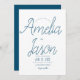 Convite Casamento de Tipo de Script Branco + Azul Minimali