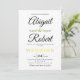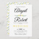 Tipografia escrita à mão, flores amarelas, simples convite para o casamento floral. Mostra seus nomes em uma escrita cursiva tipografia de estilo manuscrito e duas pequenas flores amarelas com folhas verdes em ambos os lados da seringa. O fundo inclui um padrão floral.