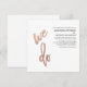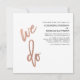 Estes convites simples e modernos de casamento apresentam a tradicional tipografia falsa rosa dourada que diz "nós fazemos", num fundo branco com texto preto para uma aparência muito na moda.