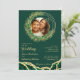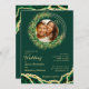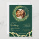Crie os convites de casamento verde esmeralda elegantes para o casamento do tema dos seus tons de joias. Este design apresenta um padrão de estilo ágil e dourado na frente e no verso. Carregue sua foto usando o modelo para obter a imagem em forma redonda. A foto quadrada é a melhor, mas você pode tentar que outros vejam se ela se encaixa aqui. Personalize os convites com seus dados na parte frontal e na parte traseira antes de fazer o pedido. Você pode personalizar ainda mais a dentro da ferramenta design.