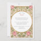 Declare seu amor com este convite romântico de casamento, inspirado pelos movimentos Artes e Artesanatos Encantados e Art Nouveau. Esta design artística apresenta uma borda simétrica de tulipas rosa estilizadas e folhas brancas, em forma de coração, em um verde macio. Toda a ilustração é definida por uma linhagem elegante e fluente em uma antiga matiz dourada, criando uma sensação sofisticada e eterno. Um quadro oval gracioso fornece a peça central perfeita para seus detalhes de casamento, que são apresentados em uma fonte serif clássica. Este convite é ideal para um casal artístico planejando um casamento antigo, romântico ou com temas de jardim com um toque de encanto histórico.
