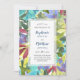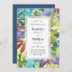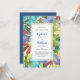 Estes convites para o casamento apresentam um padrão pintado de aquarela moderno com turquesa, aqua, flores e folhagem verdes, roxas e burgundy. Há um monograma atrás. Personalize-os com o seu próprio texto. Estes convites fazem parte de uma coleção de suítes de casamento que inclui um cheio de papelaria de casamento correspondente. Visite nossa loja ou veja nossas páginas de coleta para ver o intervalo de cheios.