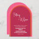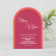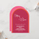 Este design apresenta um convite de casamento de verão, cor-de-rosa e cor-de-laranja, com temas brilhantes, com fontes de script elegantes para o nome do casal e fontes limpas para detalhes.