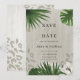 Anuncie o seu grande dia com este elegante cartão de Salve a Data de verdura tropical. Com folhas luxuriantes de palmeira e monstera com sotaques florais suaves, este design é perfeito para um casamento de destino ou um tema botânico moderno. Personalize facilmente com seus nomes, data e local para torná-lo verdadeiramente seu.