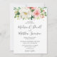 Este elegante convite de casamento apresenta um belo arranjo floral de cor-de-água rosa com pincel de marfim e detalhes de brilho dourado. Projetado para combinar com nossa coleção de casamento Bloomsdale Floral. Personalize-o com seus detalhes de forma fácil e rápida, basta pressionar o botão personalizar para reorganizar e formatar o estilo e a colocação do texto. c) O Feliz Cat Studio