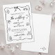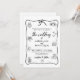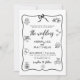 Este convite de casamento único e caprichoso é perfeito para casais que desejam adicionar um toque divertido e criativo ao seu grande dia. Projetado em clássico preto e branco, tem o charme de uma obra-prima feita à mão, como se tivesse sido esboçado com carinho e notas manuscritas. O centro da peça do design é uma moldura ondulada amarrada com um laço doce no topo, envolvendo os detalhes do casamento em uma mistura de fontes manuscritas e de estilo caligráfico para um toque divertido e pessoal.