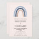 Um convite de casamento com um arco-íris fofo e caprichoso. Cor azul e pêssego.