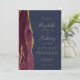 A borda esquerda deste elegante convite de casamento moderno apresenta uma cor vermelha e borrifada, com uma falsa brilha de ouro. O texto personalizável combina manuscrito dourado, fontes em copperplate e itálico em um fundo azul marinho. O verso fornece espaço para detalhes do casamento em um fundo azul de marinho sólido, junto com um código QR que os convidados podem digitalizar para visitar seu site e RSVP, o que economiza o custo de imprimir e enviar cartões RSVP separados.