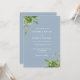 Este elegante convite de casamento azul botânico e poeirento para eucalipto verde, pode ser personalizado com suas informações em tipografia química com seu website de casamento Código QR no verso. Projetado por Thisnotme©