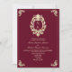 Faça uma declaração ousada com este elegante convite de casamento burgundy com sotaques de ouro antigos e um quadro clássico de monograma. O fundo vermelho-vivo profundo adiciona sofisticação, enquanto o código QR incluído torna o RSVP simples e conveniente para os casais modernos. Convidados podem procurar para responder e acessar seu site de casamento com todos os detalhes. Perfeito para uma queda ou casamento no inverno romântica.