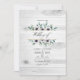Trendy eucalyptus greenery e flores de papoila em tons pastéis convite para o casamento com moldura geométrica dourada e lavagem de cor d'água da menta inversa. Ideal para qualquer tema ou casamento de jardim. O código QR no verso direciona para o seu local de casamento onde o pessoas pode aprender mais e rsvp.