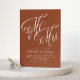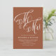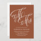 Este convite de casamento de terracota personalizável traz uma mistura perfeita de elegância rústica e conveniência moderna. Apresentando "Sr. e Sra." em bela caligrafia rustica. O código QR incluído facilita o acesso dos convidados aos detalhes do seu casamento ou RSVP digitalmente, oferecendo uma experiência perfeita para todos. Personalize este convite de casamento de terracota com seus próprios detalhes, e crie uma única e na moda primeira impressão para o seu grande dia! É a escolha ideal para casais que querem uma mistura de tradição e conveniência com tecnologia.