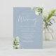 Este elegante convite de casamento azul floral botânico de arco de ouro floral pode ser personalizado com suas informações em tipografia química com seus detalhes do site de casamento e seu código QR no verso. Projetado por Thisnotme©