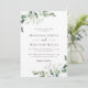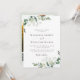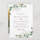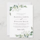 Faça a sensação romântica para o dia do seu casamento com esta design moderna com folhas de cor aquática eucalipto. No verso há um código QR para direcionar convidados para o seu site de casamento para RSVP.