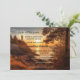 Convite de casamento com um pôr do sol na costa com um farol. No verso está um modelo de código QR personalizado para convidar convidados para RSVP.