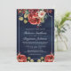 Convite Casamento do Código QR do Marinho Floral Romântico