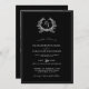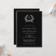 Este é um convite de casamento elegante, formal e clássico botânico e monograma em preto ebony. A parte traseira do cartão tem um lugar para sua foto e um código QR para os detalhes adicionais do seu site.