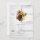 Outono - Queda de um convite para casamento no interior do celeiro rústico com rosas brancas e marrom e girassóis com uma abertura de algodão. Ideal para qualquer tema ou casamento de jardim. O código QR no verso direciona para o seu local de casamento onde o pessoas pode aprender mais e rsvp.