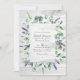 Lavanda verde de prata verde de folha, convite para casamentos de casamentos no campo rústico do país com burlap, desenhado para ser rápida e facilmente personalizado de acordo com as especificações do seu evento. Ideal para qualquer tema ou casamento de jardim. O código QR no verso direciona para o seu local de casamento onde o pessoas pode aprender mais e rsvp.
