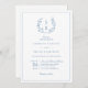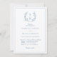 Caligrafia elegante e monograma botânico coravam o convite para casamento do código QR azul real.