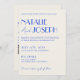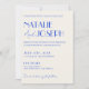 Este convite para o casamento é perfeito para o seu casamento se você estiver procurando um design único e fácil de ser editado. Que apresenta um plano de fundo cremoso. E os primeiros nomes da noiva e do noivo azul elegante na fonte parisiense. e informações editáveis com nomes também na parte de trás e código QR personalizável para o rsvp online e detalhes do casamento. Barato e é também um e-convite eletrônico digital se você quiser enviá-lo por texto ou email. Todas as informações são personalizáveis clicando no botão personalizar. Então pegue-o e faça-o seu para que você faça você convidar noivos e excitados.