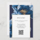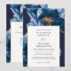Este elegante convite de casamento floral azul e dourado pode ser personalizado com suas informações em tipografia moderna e seus detalhes de casamento no verso junto com seu website de casamento Código QR. Projetado por Thisnotme©