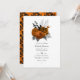 O convite de casamento temático do Dia das Bruxas, laranja e gótico floral preto, é personalizável para suas especificidades. Ideal para qualquer tema ou casamento de jardim. O código QR no verso direciona para o seu local de casamento onde o pessoas pode aprender mais e rsvp.