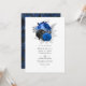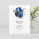 Convites de casamento florais de coloração aquosa russa em sotaque de azul real, preto e prata projetados para serem rápida e facilmente personalizados de acordo com as suas especificidades de evento. Ideal para qualquer tema ou casamento de jardim. O código QR no verso direciona para o seu local de casamento onde o pessoas pode aprender mais e rsvp.