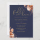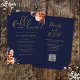 Este elegante convite de casamento pode ser personalizado com suas informações em tipografia de ouro-chico com seus detalhes no site de casamento e seu código QR no verso em um fundo azul-marinho. Projetado por Thisnotme©