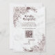 Chamadas de Casamento do Código QR Islâmico do Lace Floral Branco. Frente de Convite: Um cenário de mármore branco intocado fornece uma base luxuosa para este convite de casamento elegante. Os deliciosos designs de rendas florais, que lembram intrincados bordados, estão posicionados em cantos opostos, criando uma estética feminina e assombrosa visualmente. O convite começa com a frase sagrada "Bismillah" na elegante caligrafia árabe, invocando bênçãos divinas sobre o casal. Abaixo, os nomes dos casais são exibidos com destaque, seguidos de detalhes essenciais do casamento, como data, hora e local. Convite de volta: O verso do convite espelha a estética da frente, com o mesmo fundo de mármore branco e designs de rendas florais. Uma tipografia ousada incita os convidados a "responderem gentilmente" pela data de vencimento do RSVP. O URL do site do casamento é fornecido para obter informações mais detalhadas, e um código QR é colocado de forma conveniente para acesso rápido a detalhes digitais. Os nomes dos casais também são incluídos no verso para facilitar a referência.