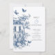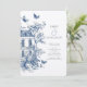 Convite Casamento do Código QR Rustic Blue Toile De Jouy