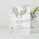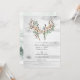 Bolas de algodão de seda rustica e eucalipto marrom e poeirentos deixam convite para casamento boêmico com penas e chifres de vassoura. O código QR no verso direciona para o seu local de casamento onde o pessoas pode aprender mais e rsvp.