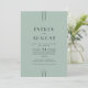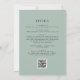 Este refinado convite de casamento de dupla face da coleção Everly apresenta sotaques de linha geométrica e tipografia retrô em verde-silvo. É mínimo, mas glamouroso e ideal para casamentos modernos com talento vintage. Salve o papel, incluindo um código QR para seu convidado para ver detalhes, RSVP ou ambos.