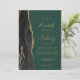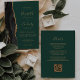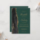 A borda esquerda deste elegante convite de casamento moderno apresenta uma coloração aquosa preta, borda agitada, aparada com falso brilho dourado. O texto personalizável combina manuscritos dourados, placas de impressão e fontes itálicas em um fundo verde esmeralda. O verso fornece espaço para detalhes do casamento em um fundo verde sólido, junto com um código QR que os convidados podem digitalizar para visitar seu site e RSVP, o que economiza o custo de imprimir e enviar cartões RSVP separados.