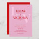 Convite Casamento do Código QR Vermelho Brilhante e Rosa N