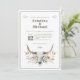 Evoque o espírito do Oeste Selvagem com o nosso Convite Vintage Longhorn Skull Wedding. Apresentando um crânio mais longo, enfeitado com flores delicadas e folhagem em um estilo rústico de aquarela ocidental, este convite expele encanto e elegância. Perfeito para casais que buscam um casamento antigo, country, ou de temas ocidentais, ele dá o tom para uma celebração memorável cheia de beleza eterno e de prazer rústico.