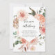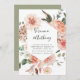 Este convite para o casamento apresenta um quadro hexágono com rosas de jardim cor-de-rosa embebidos em água, dahlias, ranunculus, hydrangea e folhas verdes. Para uma personalização mais avançada deste design, clique no BOTÃO FERRAMENTA DESIGN AZUL. Itens correspondentes também estão disponíveis.