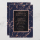 Uns azuis marinhos modernos, elegantes, chiques e simples e um mármore cor-de-rosa do ouro com convite do casamento do quadro. Aperfeiçoe para o casamento elegante, chique.