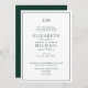 Seu casamento é um dos dias mais importantes da sua vida, então você quer que tudo seja perfeito. Isso inclui seus convites! Este Elegante Convite para Casamento de Script Clássico Emerald Green para Monograma é exatamente o que você precisa para definir o tom para seu dia especial. O design de ouro luxuoso é perfeito para um assunto formal, e a caligrafia de guião adiciona um toque de sofisticação. Além disso, seus convidados vão adorar o toque pessoal do monograma. Além disso, no verso há também um código QR para que seus convidados possam digitalizar e RSVP facilmente. Peça seus convites hoje e certifique-se de que seu casamento seja um para se lembrar! Entre em contato com o designer para produtos correspondentes. Copyright Anastasia Surridge for Elegant Invites, todos os direitos reservados.