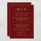 Anuncie seu casamento com estilo refinado usando este convite moderno minimalista que apresenta suas iniciais de monograma e detalhes de casamento em letras brancas nítidas. Os sotaques deliciosos de escrita de caligrafia acrescentam um sentimento romântico e eterno. O rico fundo burgundy traz profundidade e elegância ao design e pode ser personalizado a qualquer cor de sua escolha para corresponder ao seu tema de casamento. Perfeito para casais que apreciam o design clássico com uma reviravolta pessoal e moderna. Personalize facilmente para se adequar ao seu grande dia!