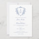 Este Convite de Casamento de Monograma de Crest Floral de Regência Azul apresenta uma crista monográfica de estilo vintage decorada com Rosas franceses e caligrafia clássica para os nomes da noiva e noiva. Este convite da crista do monograma vitoriano é ideal para um casamento formal e luxo com elegância clássica e sofisticação moderna.