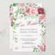 Convite de casamento russo elegante, com pincel rosa-pincel e vermelho-burgundy pintado rosas de pénia com folhas verdes e folhagem, e com um roteiro de caligrafia manuscrito e editável. ++++++++++ Adequado para primavera, jardim de verão ou outono / quintal externo / casamentos vintage românticos.