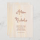 Um convite que exumenta elegância e romance - com fundo de aquarela de ouro escovado e caligrafia romântica de terracota, ele dá o tom perfeito para uma bela celebração de casamento.
