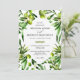 A oliva deixa branco quadro verde convite para o casamento. Convide sua família e amigos para o seu casamento com nosso convite de casamento no país. Nosso convite para o casamento no país apresenta folhas de oliveira e plantas com estilo aquoso com detalhes em uma moldura branca. É perfeito para casamentos de verão e casamentos de campo.