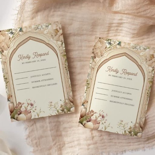 Incêndio aos seus convidados com este elegante convite de casamento, com belos pavões e arcos antigos. Basta adicionar os detalhes do seu evento neste modelo fácil de usar para torná-lo um convite de tipo único.